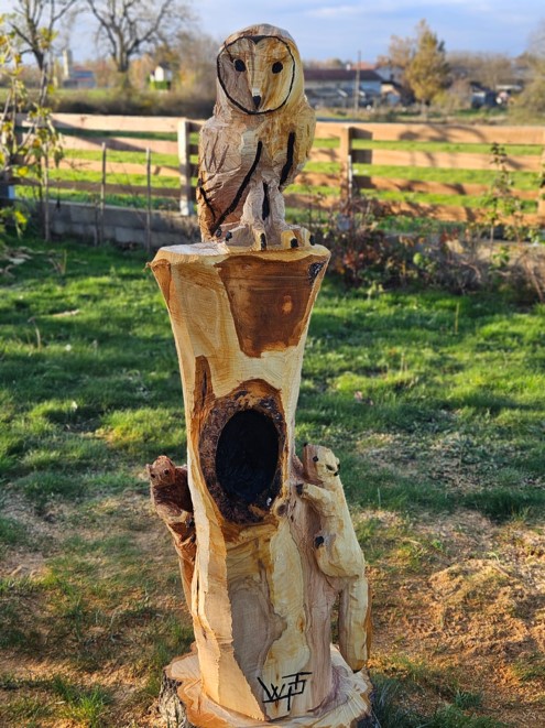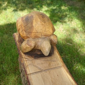 De retour chez moi que faire de tout ça ? Comment le faire évoluer ? Pas à pas, j’investis dans du matériel, je récupère du bois considéré inutile ou dérangeant, je cherche, j’essaie, je m’exerce sur des petits morceaux de bois. Inspiré par la nature, je réalise des écureuils, baleines, oiseaux et autres animaux. Je garde en tête l’idée du perfectionnement, héritage de mon passage chez les compagnons du devoir, et j’essaie de trouver ce que je souhaite faire.