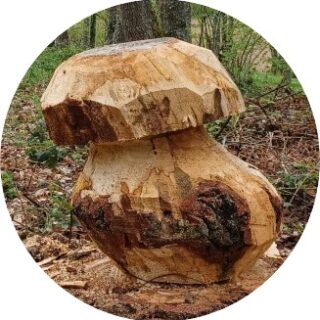 Durant les quatre années de mon tour de France, j’ai découvert la passion du voyage, de la mobilité, des rencontres, ce qui m’a amené jusqu’en Allemagne. J’ai réalisé que mes mains étaient un vrai passeport, j’ai arrêté mon chemin avec les compagnons du devoir pour essayer de construire le mien. J’ai une passion pour la tronçonneuse, le bois brut, et je me suis mis à sculpter en faisant du bois avec mon père, pourquoi ne pas y faire pousser des champignons !