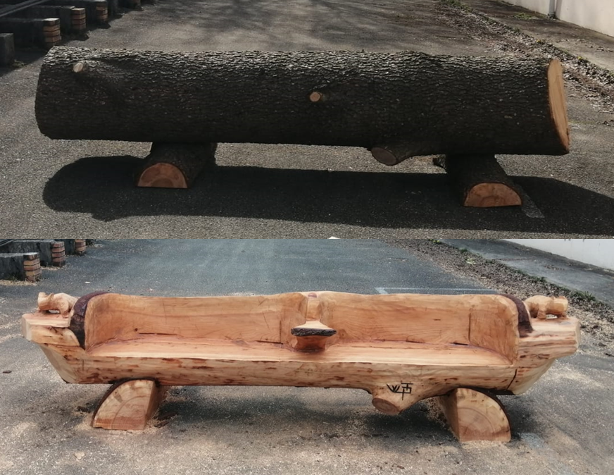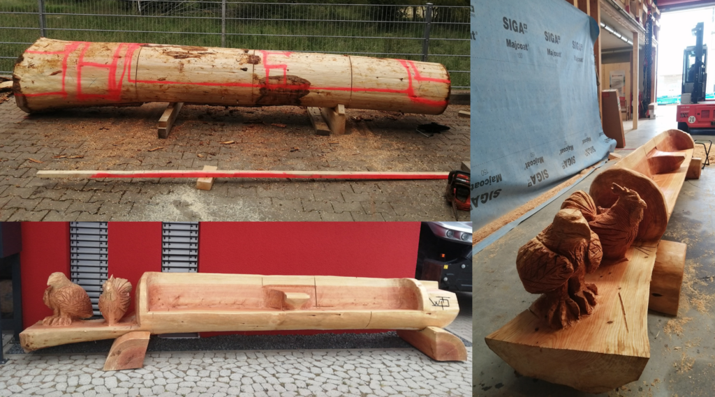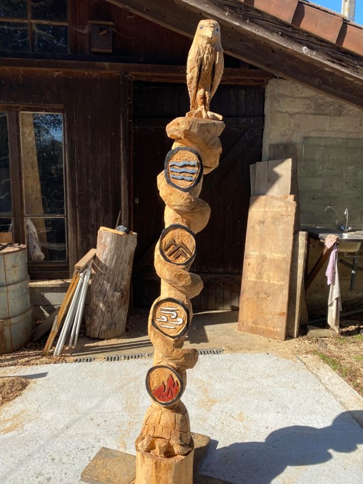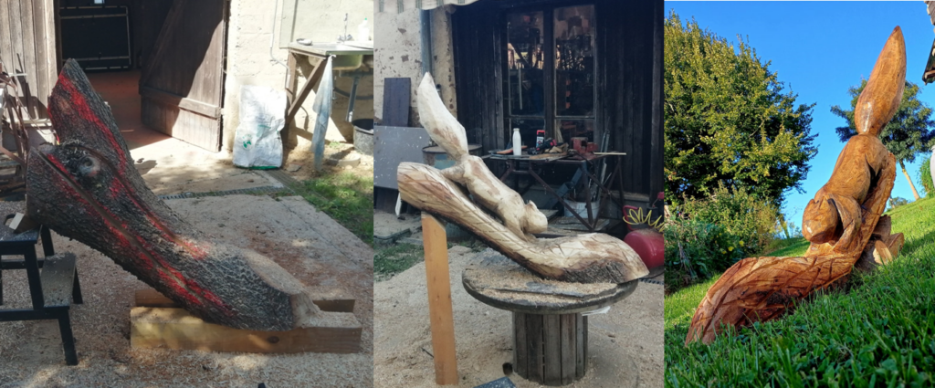 Le temps passe et l’idée du recyclage émerge, me déplacer avec trois, quatre outils, pour donner une seconde vie à des arbres. Les laisser où ils sont et leur permettre de continuer à participer à la vie du lieu. Totem pour décoration ou banc pour l’utilité est une meilleure option que de finir en bois de chauffage ou en copeaux !